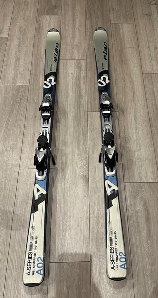 Esquís Elan A-Series de 168 cm. Esquis en muy buen estado, encerados y canteados. Perfectos para principiantes y nivel medio. Se regalan bastones de la marca elan. - Modelo: A02 - Medidas: 110-68-95 - Marca: Elan - Serie: A-Series