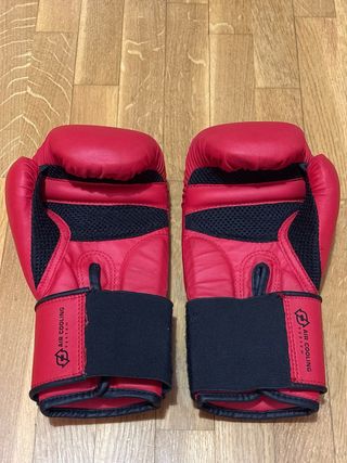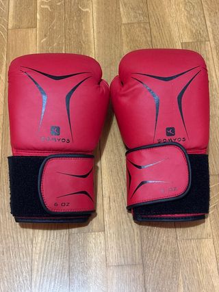 Par de guantes de boxeo Domyos en color rojo, talla 6 oz. - Diseño con detalles en negro. - Cierre de velcro ajustable.