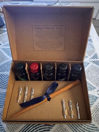 Estuche de caligrafía con tintas y plumillas