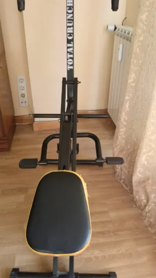 Máquina de ejercicio Total Crunch para entrenar en casa. Su diseño permite trabajar diferentes grupos musculares. - Estructura metálica. - Asiento acolchado.