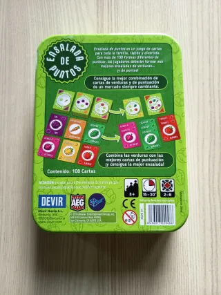 Juego de mesa Ensalada de Puntos. Molly Johnson, Robert Melvin, Shawn Stankewich. Devir. 8+ años. 2-6 jugadores. 15-30 minutos de partida. Muy buen estado. # cartas 3 4 5 familiar ligero filler draft abierto multiusos sushi go fantasy realms colección conjuntos caravana al oeste abstracto caja lata #