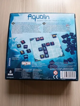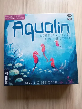 Juego de mesa Aqualin. Marcello Bertocchi. Devir. Exclusivo para 2 jugadores. 10+ años. 20 minutos de partida. Independiente del idioma, reglas en castellano y portugués. Perfecto estado. Muy leves signos de uso en la caja. #estrategia submarina 8 español abstracto movimiento cuadricula fichas baquelita colección conjuntos losetas colocación animales peces filler #