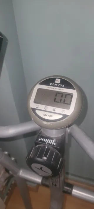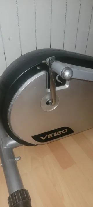 Bicicleta elíptica de color gris y negro, ideal para entrenamientos en casa. - Diseño moderno y compacto. - Pedales amplios y antideslizantes. - Manillar ergonómico.