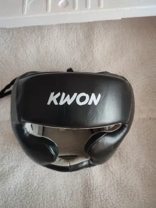 Casco de boxeo de la marca KWON. Diseñado para proteger la cabeza durante el entrenamiento. - Boxeo, artes marciales, deportes de combate. - Protección para la cabeza y la cara. - Color negro. - Cierre ajustable. #cascodeboxeo
