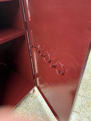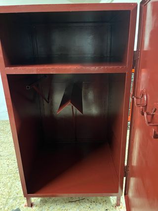 Armario de metal de color rojo, ideal para guardar equipamiento. - Puerta con cierres. - Estantes interiores. Mas información en +34 667 203 734