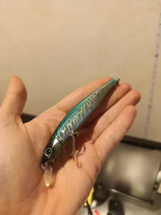 Señuelo de pesca diseñado para la técnica de spinning. Su diseño imita a un pez para atraer a las presas. - Cuerpo plateado con detalles azules y negros. - Dos anzuelos triples. - Paleta transparente en la parte inferior.