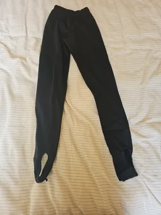 Pantalón de patinaje artístico en color negro. - Talla 6 años. - Diseño con pie. - Cintura elástica. - Agujero microscópico en parte baja. Ver foto.