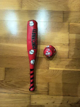 Set de bate y pelotas de béisbol de los Cincinnati Reds. - Bate de color rojo con detalles de béisbol. - Pelota a juego con el equipo.