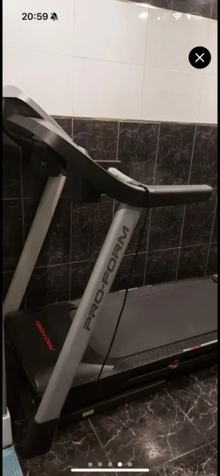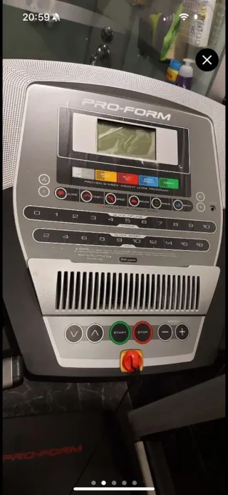Cinta de correr de la marca Pro-Form. - Panel de control con pantalla. - Botones de programa y velocidad. - Botones de inclinación y control de velocidad. - Botones de inicio, parada y emergencia.
