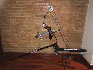 Vendo arco de poleas para adulto con su carcaj, protector, 3 disparadores (cascade, carter y otro), dactileras, medidor de libras(potencias del arco), 2 barras estabilizadoras, contrapesos y funda. El Arco va con su visor, Scope x6, funda para el arco, diopter y reposaflechas. REGALO arco de poleas de niño (barra estabilizadora, carcaj, disparador). REGALO enciclopedia Longbow (en inglés). Tfno o Whatspp 600 295916