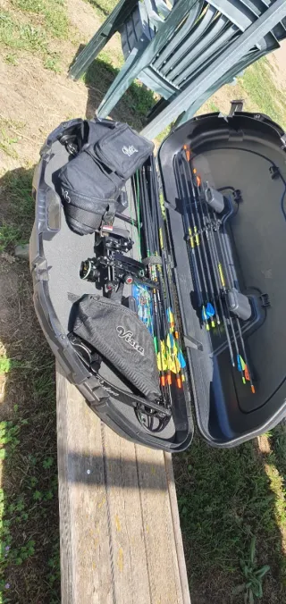 Se vende arco de poleas completo, listo para usar. - Incluye funda de transporte. - Accesorios de tiro. - Variedad de flechas.