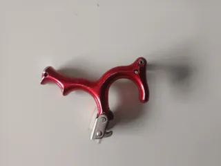 Disparador de arco en color rojo, diseñado para arcos compuestos y de poleas. - Fabricado en aluminio. - Mecanismo back tension. - Diseño ergonómico.