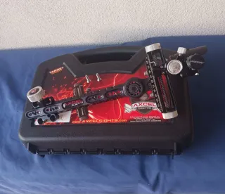 Arco de poleas diestro Hoyt Stratos 40 hbt está a 32,5 y es de potencia 50-60.Pero tengo los módulos para que la puedas poner desde 29 hasta 32. Se entrega empuñadoras originales para variar el ángulo de agarre. - Color gris oscuro metalizado - perfecto estado. Solo usado una temporada. Con cuerdas recién cambiadas por un valor de 300 €. -Solo se incluye el arco, si están interesados en el resto de equipamiento, se podría negociar. Scope Axcel AVX-31 visor Sanlida carbono luz E-tac estabilizador doinker platinum - Viene en un maletín de transporte pero habría que añadirle 130€