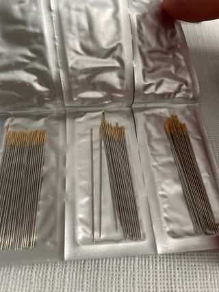Pack de agujas de coser a mano de la marca Regal. - Acabado niquelado. - Modelo: Nylon Darning (Laine). - Tamaño: No. 8 y No. 7 - Cantidad: 20 agujas por paquete. - Fabricadas en Japón. 2 paquetes x 1 euro