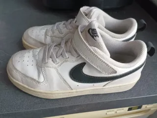Zapatillas deportivas Nike de color blanco, perfectas para el día a día. Talla 34 - Cierre con velcro y cordones. - Detalle de logo Nike en la lengüeta. - Swoosh de Nike en contraste en el lateral.