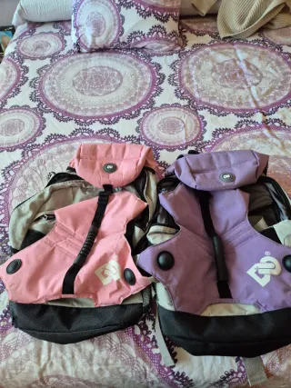 Set de dos mochilas diseñadas para patinaje de velocidad. Una mochila es de color rosa y la otra de color lila. - Diseño ergonómico. - Compartimento principal. - Correas ajustables. Una 18e dos 25e