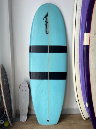 Tabla de surf Tactic modelo Mini Malibú, sistema de quillas 2+1 6’6”x22 1/8”x2 13/16” 47l Tiene por reparar un golpe que llevó el cajetín de la quilla izquierda transportandola, por ende no ha tenido contacto con el agua, además de dos pequeños golpes en el canto. Todo puede arreglarse con solarez. No incluye quillas.