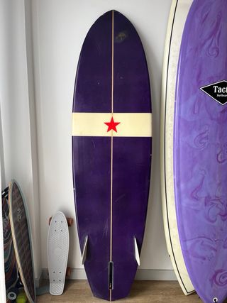 Tabla de surf modelo Mini Simmons de la marca Predator Surf Factory. 5’4”x21”x 2 5/8” 30.5 l Usada en buen estado. lista para el agua. Ideal para días pequeños y medios Quillas inlcuidas en el precio