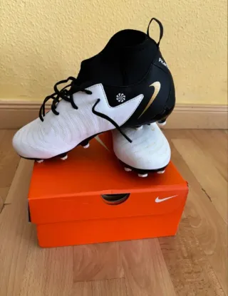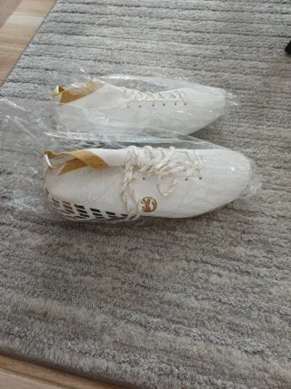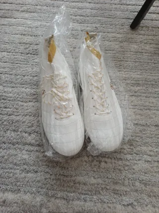 Botas de fútbol de color blanco con detalles dorados. Se venden en su embalaje original. - Cierre con cordones. - Diseño acolchado.