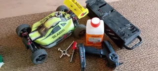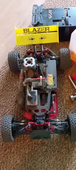 Coche radiocontrolado Ninco Blazer con motor nitro. Incluye mando a distancia, bidón de combustible y herramientas. - Coche RC Ninco Blazer. - Motor de combustión interna (nitro). - Mando a distancia 2.4GHz. - Bidón de combustible Merlin. - Herramientas para mantenimiento.