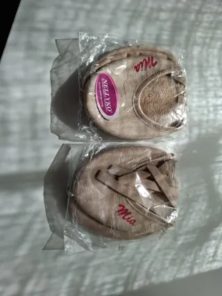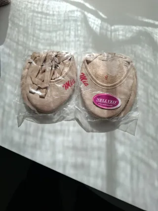 Punteras de baile marca Mia en talla M. Son ideales para la práctica de gimnasia rítmica o danza. - Color: Beige - Material: Piel sintética - Cierre: Elástico