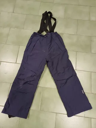 Pantalón de nieve azul marino para niños, talla 10, con tirantes ajustables. - Tejido resistente al agua y al viento. - Bolsillos frontales y laterales. - Tirantes negros. - Forro interior.