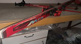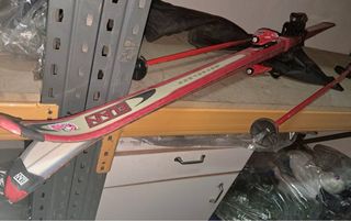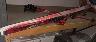 Se venden esquís y bastones de la marca Head. - Esquís con diseño rojo y blanco. - Bastones rojos con empuñaduras negras -Fijaciones en mal estado -Para persona asta 1’70