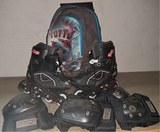 Patines de línea de la talla 43. Se puedes utilizar sin ningún problema, aunque tiene dos correas del pie rotas (como se puede ver en la foto), aunque repararlas no es complicado