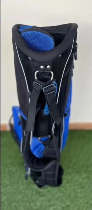 Bolsa de golf con sistema de trípode integrado para mayor estabilidad. - Color negro y azul. - Compartimentos para palos. - Correas de sujeción.