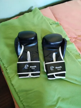 Par de guantes de boxeo de la marca Leone. - Color negro. - Peso de 14 oz. - Cierre de velcro.
