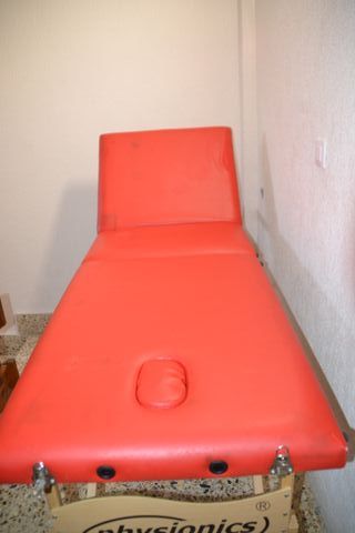 Camilla de masaje plegable de color rojo, ideal para tratamientos y masajes. Su diseño permite un fácil transporte y almacenamiento. Perfecto estado y poco uso Medidas...Largo 200 cm. Ancho 70 cm. Alto 80 cm. - Tapicería de vinilo. - Orificio facial. - Estructura de madera.