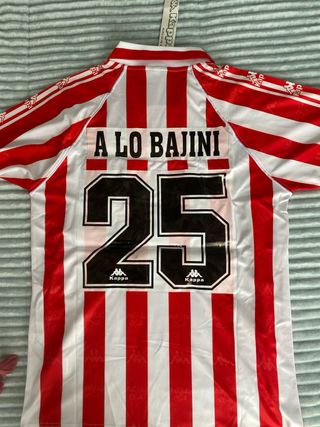 Camiseta de fútbol del Athletic Club de Bilbao. - Diseño a rayas rojas y blancas. - Logo de Kappa en el pecho y mangas. - Escudo del club en la parte frontal.