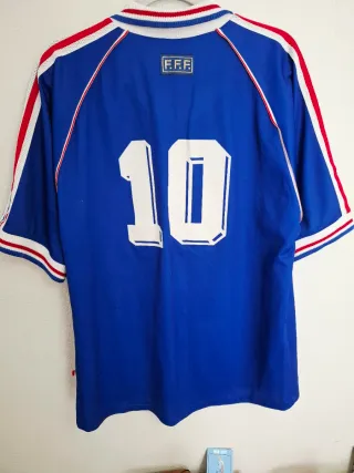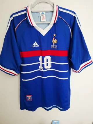 Camiseta clásica de la selección de Francia 1998 🇫🇷 • Marca Adidas • Número 10 estilo Zidane • Escudo y logo bordados • Parche “Official Garment” en la parte baja Estado general bueno para su edad, pero tiene: • Algo de burbujas/pilling en la tela • Pequeño enganche (snag) en la manga Nada muy visible al llevarla, pero lo menciono por transparencia. Una camiseta muy icónica del Mundial 1998 🏆 📦 Envío por Wallapop 📏 Medidas disponibles si se solicitan