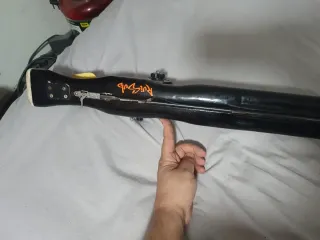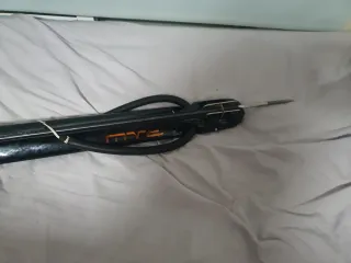 Fusil de pesca submarina de fabricación artesanal. Diseñado para la pesca. - Cuerpo principal de color negro. - Gomas de propulsión. - Varilla metálica en la punta.