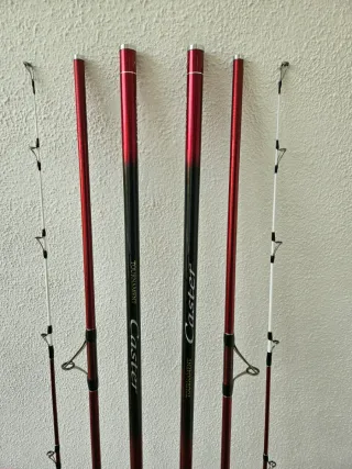 Conjunto de cañas de pescar y carretes de las marcas Daiwa y Shimano. - Cañas de pescar Daiwa. - Carrete Shimano Fliegen. - Posibilidad de comprar por separado. - Más info en mi perfil, se pueden ver los 2 anuncios con toda la explicación de cada articulo.