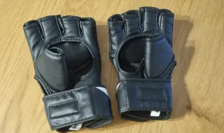 Par de guantes RDX modelo F12B. Nuevos - Color negro con detalles blancos y rojos. - Cierre de velcro. - Diseño sin dedos.