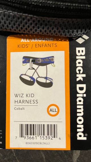 Arnés de escalada infantil de la marca Black Diamond, diseñado para los más pequeños. - Cintura acolchada para mayor comodidad. - Perneras ajustables. - Hebillas de fácil manejo.