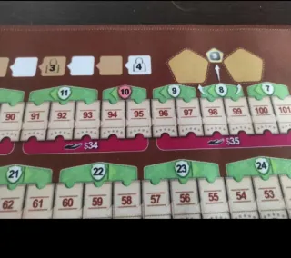 Tapete para el juego de mesa ark nova. Buen estado. Como no viene marcado cuando elegir las cartas de puntuación de final de partida, lo marque yo con fluorescente rosa. Tapete con bordes bordados.