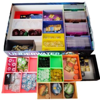 Organizador para el juego de Mesa Underwater Cities. ✅ Ligero ✅ Temático ✅ Rápida preparación ✅ Soporta cartas enfundadas ✅ Válido para las expansiones Se puede guardar en la caja el inserto junto con el tablero base y el manual. Los tableros de las expansiones se guardan aparte. O puedes guardar todos los tableros en la caja de la expansión y el resto en la caja base, para que quede más holgada. Este inserto es para la caja de juego cuyas dimensiones son: 32x23x7 ⚠️Juego NO incluido