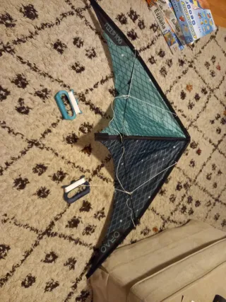 Cometa Decathlon FeelR100 en color azul y verde. - Diseño triangular. - Incluye asas para el control. En perfecto estado. No se ha usado.