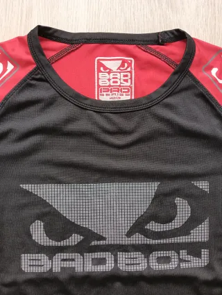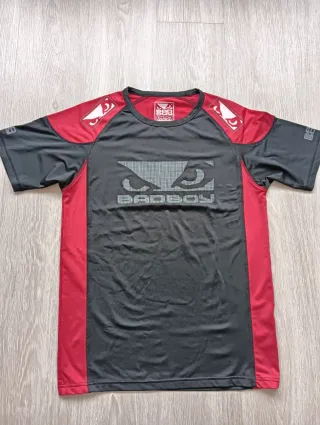 Camiseta deportiva de la marca BAD BOY, modelo PRO SERIES. - Diseño con paneles laterales en color rojo. - Logo de BAD BOY estampado en el pecho. - Cuello redondo y mangas cortas.