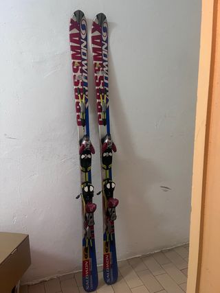 Esquís de la marca Salomon, modelo Crossmax. - Diseño con detalles en rojo, azul y blanco. - Fijaciones Salomon incluidas. Hace falta mantenimiento