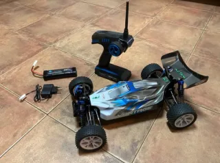 Buggy 1/10 vantage 2.0 Brushed Buggy radiocontrolado listo para la acción. Incluye todo lo necesario para empezar a disfrutar. Incluye 2 Baterías una de 1800mAh y la otra 3500mAh que es una mejora Cargador Y Emisora de Radio etronix sport de 2.4Ghz - Diseño deportivo en blanco y azul. - Neumáticos todoterreno. - Mando a distancia con antena. - 2 Baterías recargables - Cargador de batería.