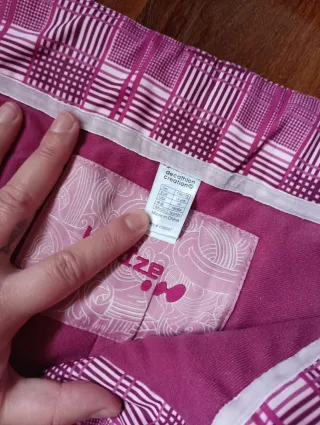 Pantalón de nieve con un diseño a cuadros en tonos rosas y blancos. Ideal para actividades al aire libre en climas fríos. - marca Wedze -talla 14 años -medidas: 42 cm cintura y 108cm largo -usado en dos ocasiones -Diseño a cuadros. - Cintura elástica. - Puños ajustados en los tobillos.
