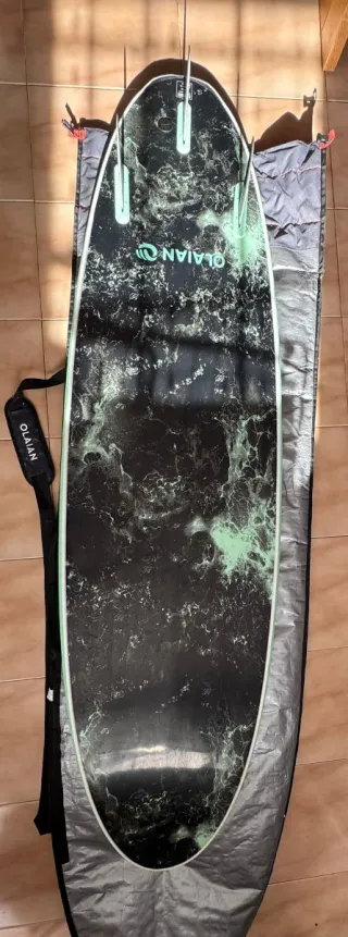 Tabla de surf de corchopan con funda incluida. Ideal para iniciarse en el surf. - Diseño moderno y llamativo. - Funda protectora para transporte y almacenamiento.