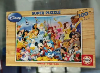 Puzzle de la marca Educa con licencia Disney. Presenta una ilustración colorida con muchos personajes clásicos. - 100 piezas. - Ilustración de personajes Disney. - Fabricado en madera. Usado pero en buen estado.