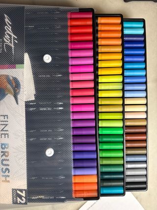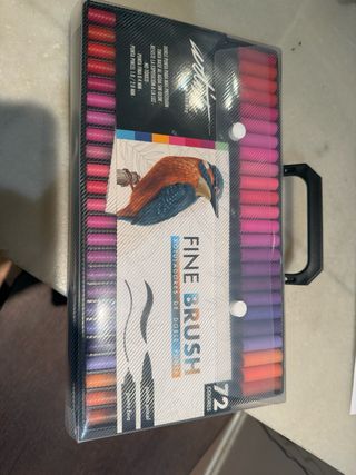 Set de 72 rotuladores doble punta fina y pincel. Para mintar mandalas, dibujos, lettering, manualidades. Sin usar, ya que fue para un regalo y no lo quieren Con ticket de compra