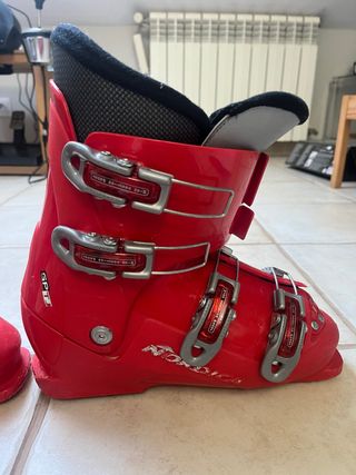 Botas de esquí Nordica GP TJ en color rojo. - Modelo GP TJ. - Color rojo. - Cierres de hebilla. Talla 25 25,5 Le faltan las taloneras, pero se puede esquiar asi, el ski encaja bien.