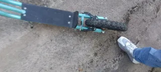Este patín de adultos es de color azul y cuenta con ruedas grandes para un mejor desplazamiento. - Rueda delantera de 16 pulgadas. - Rueda trasera de 12 pulgadas. - Plataforma antideslizante. - Manillar ajustable en altura.