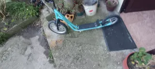 Patín scooter de color azul, diseñado para adultos. Ideal para desplazamientos urbanos. - Estructura de metal resistente. - Rueda delantera ancha para mayor estabilidad. - Plataforma antideslizante.